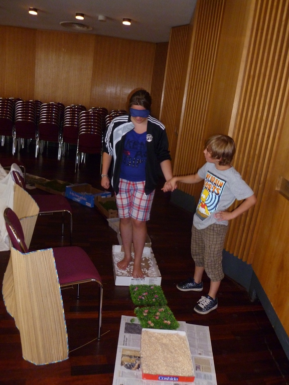 Michaela Imhof lud dazu interessierte Kinder ein. Insgesamt 16 Teilnehmer folgten dieser Einladung und kamen einstimmig zum Ergebnis, dass dieser Sinnesparcours keine Wünsche offen lies. Stadtjugendpfleger Michael Lichei freute sich, dass dieses Angebot so zahlreich angenommen wurde. „So ein Thema hatten wir noch nie im Programm“, meinte er nach den beiden Stunden. Umso mehr freute ihn daher das Urteil der Kinder: „Das war wirklich toll und hat uns riesig viel Spaß gemacht!