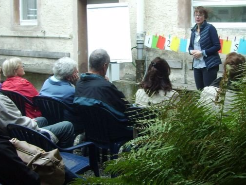 Strukturiert wurde der Tag durch die beiden Mitmachvorträge von Michaela Imhof und Sabine Hummel, die im lauschigen „Höfle“ der vhs stattfanden, und zwei Denkpfade rund ums Villinger Münster, die von Marianne Kranzer und Manuela Lübben-Konstantinoff vorbereitet worden waren.